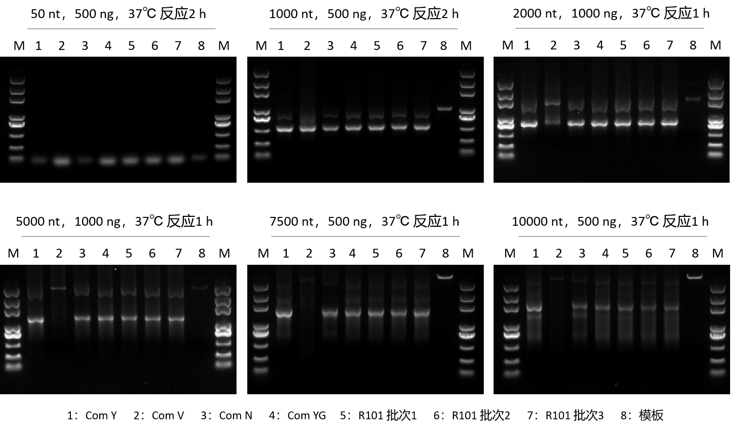 GenStar #R101批次間性能穩(wěn)定,且轉(zhuǎn)錄效率優(yōu)于 Com Y 和 Com V。